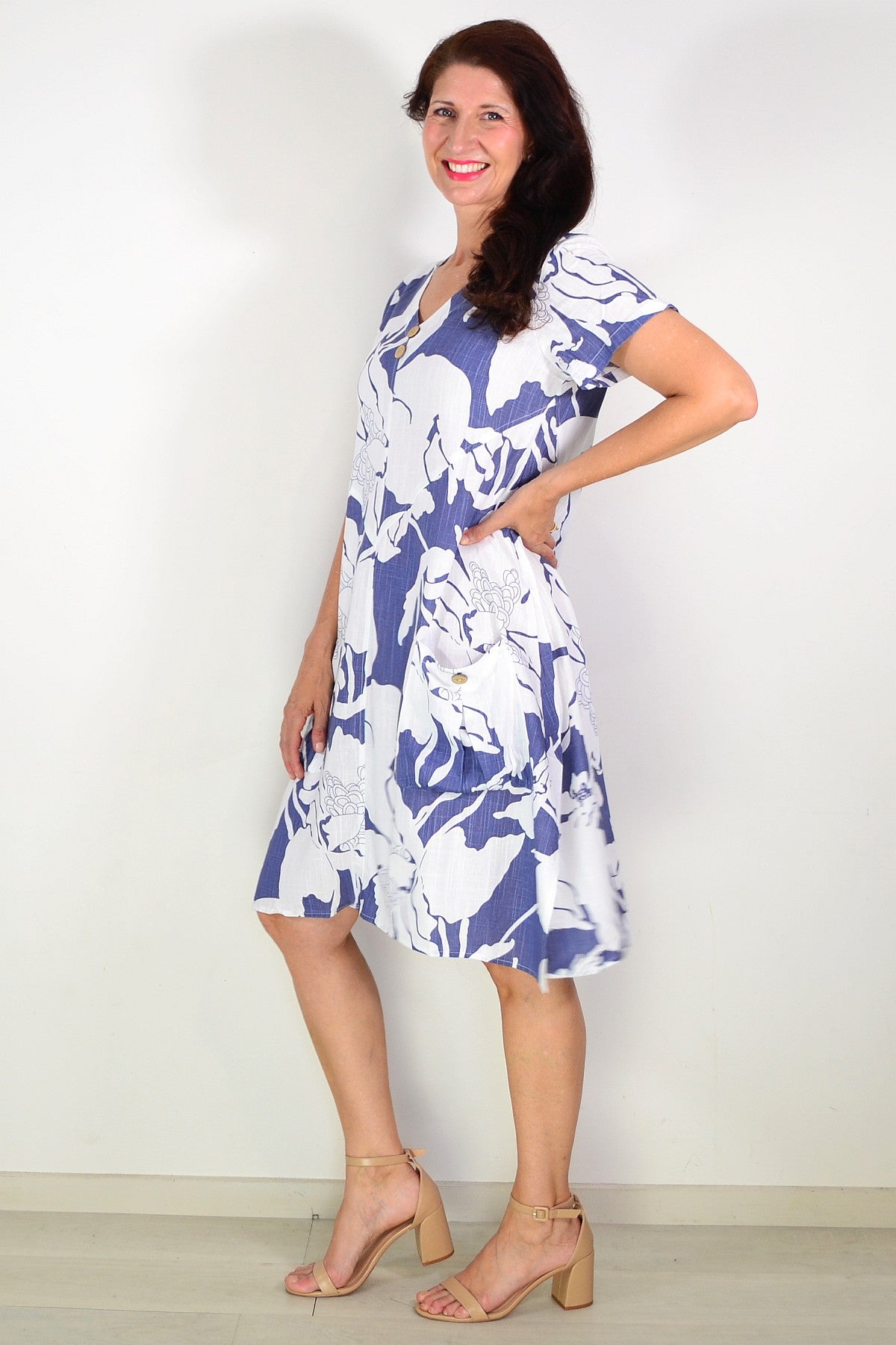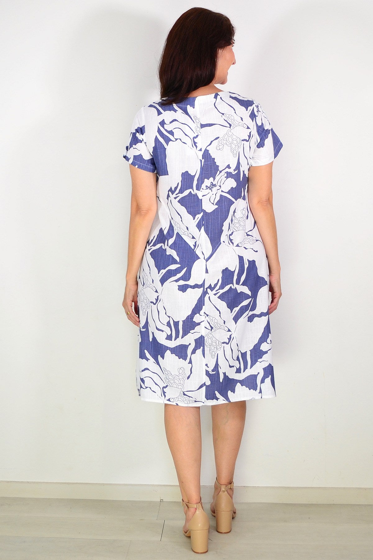 Floral Blue Linen Blend Short Sleeves Tunic Dress is available in size 10 to 16 - Please have a look at our sizing guide to help you selected the size that compliments you