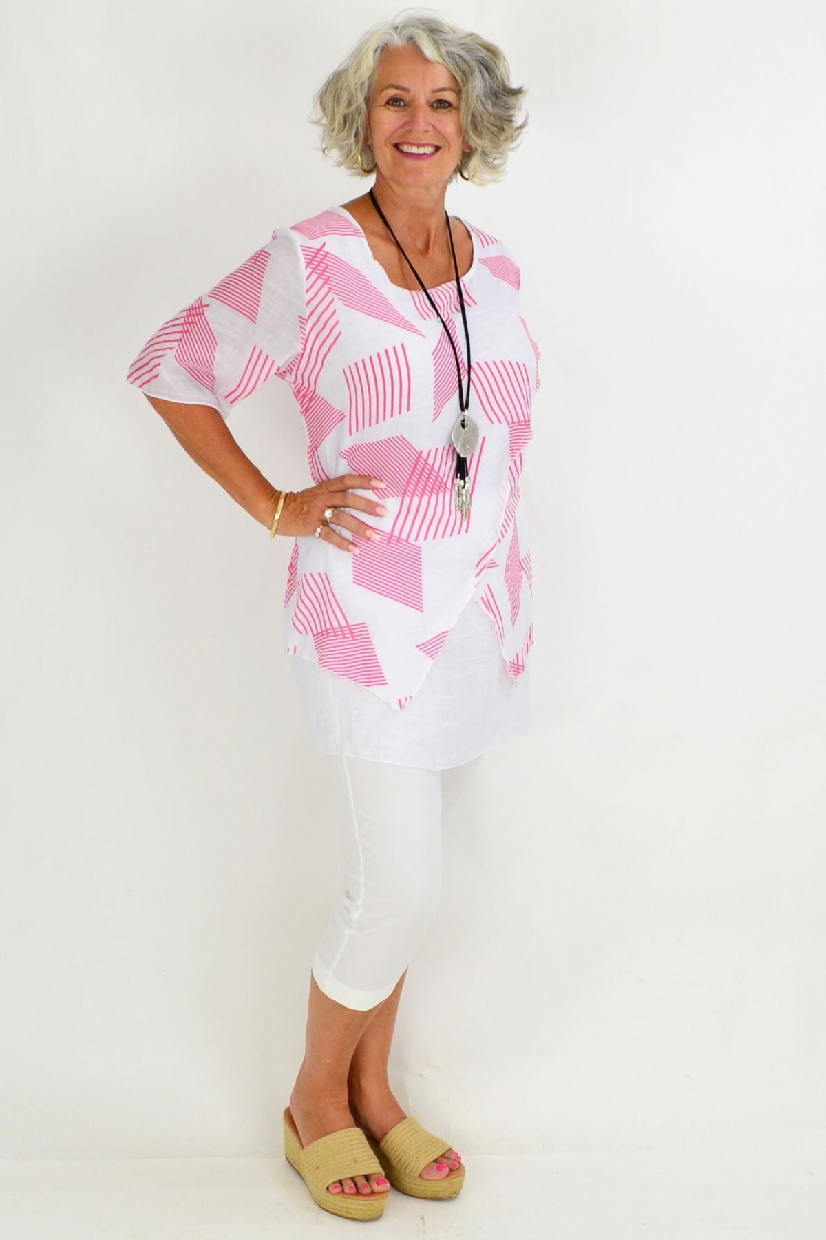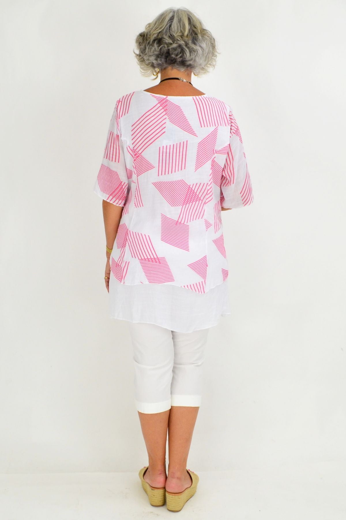 Breeze through Summer in this Crinkle red and white layered Cotton Linen Tunic top. With the bodice fully lined you can be confident in walking out the door. It is elbow length sleeves with a double layered white hem and relaxed A line cut. Pair with simple flats and crop pants for a cool relaxed look this summer