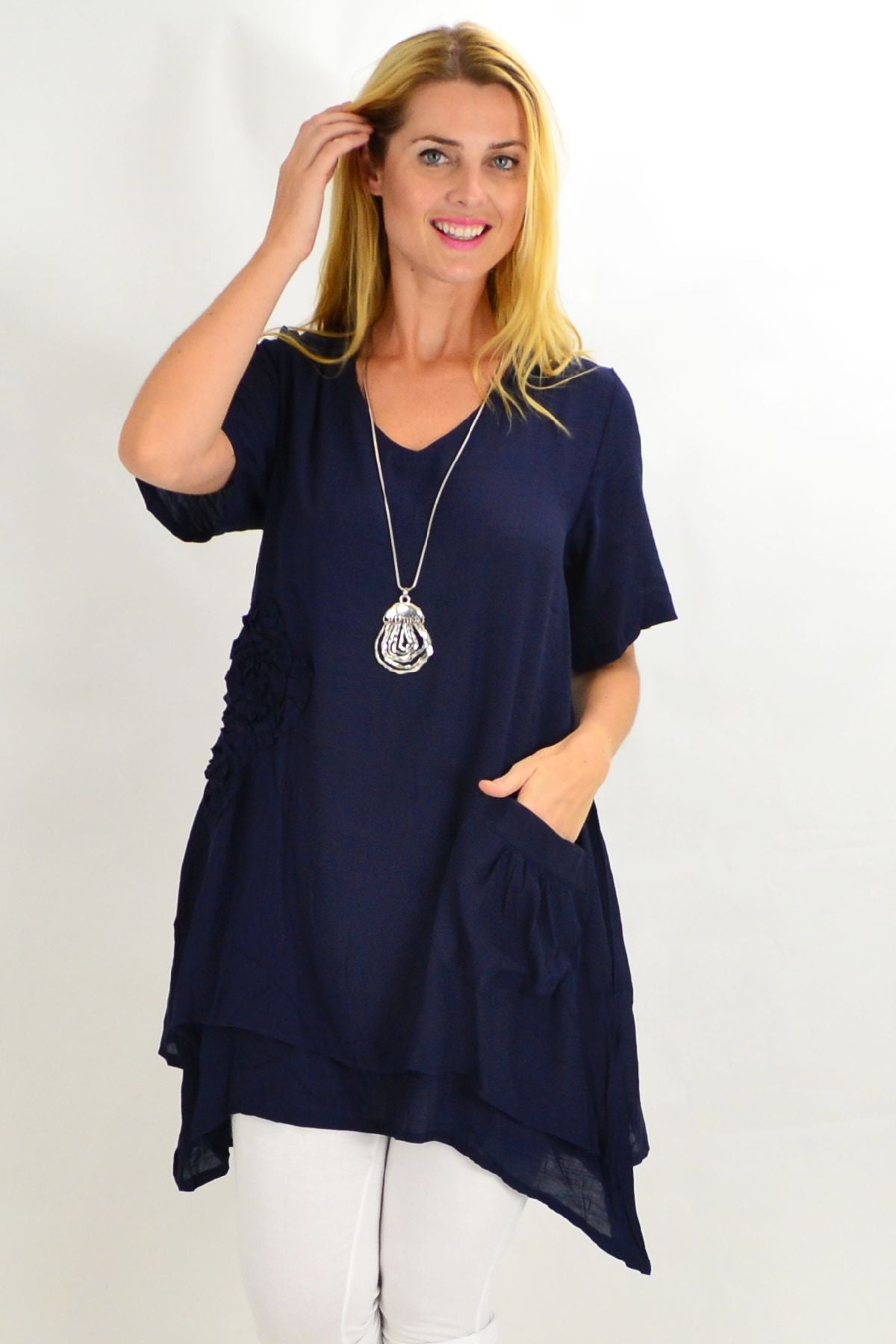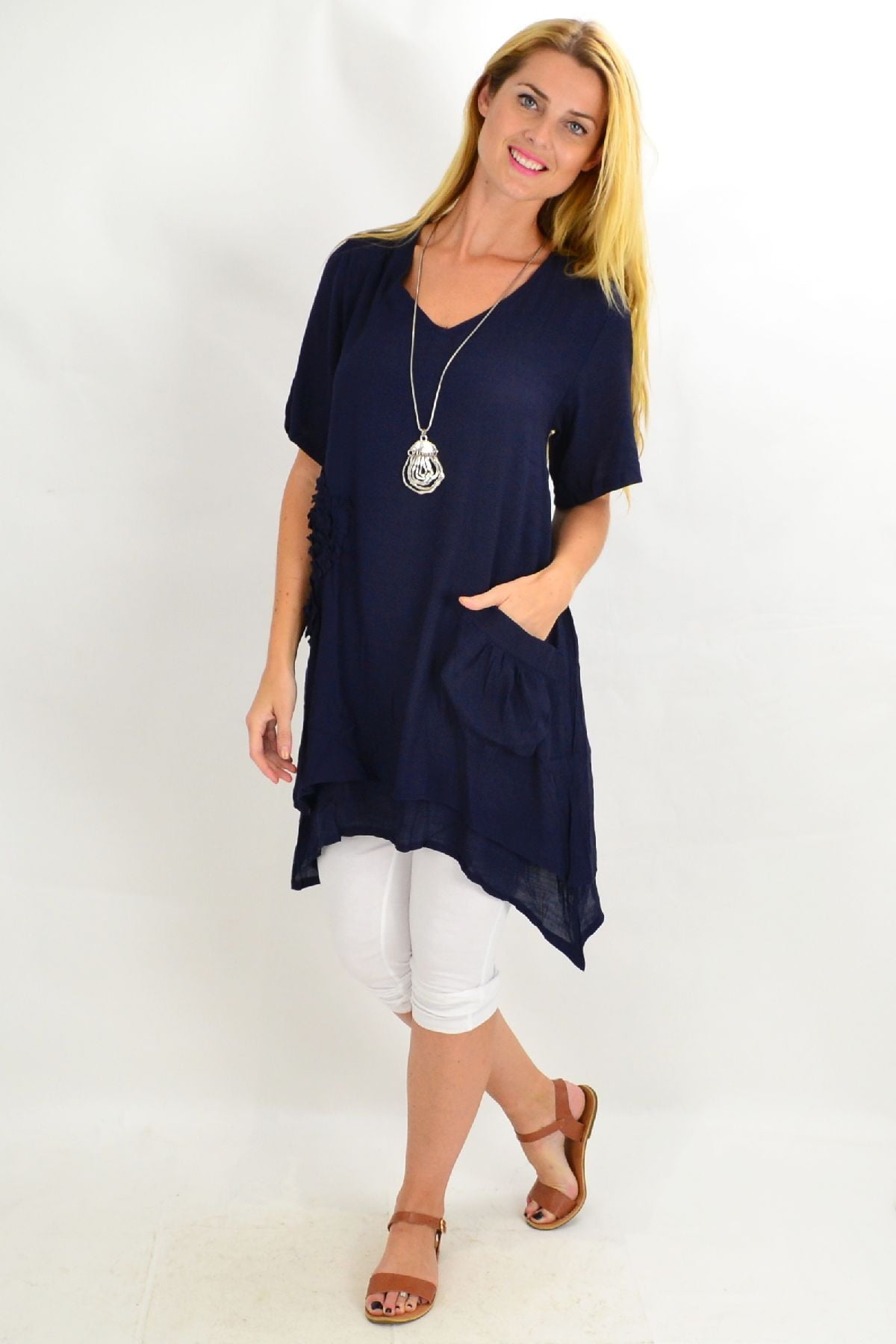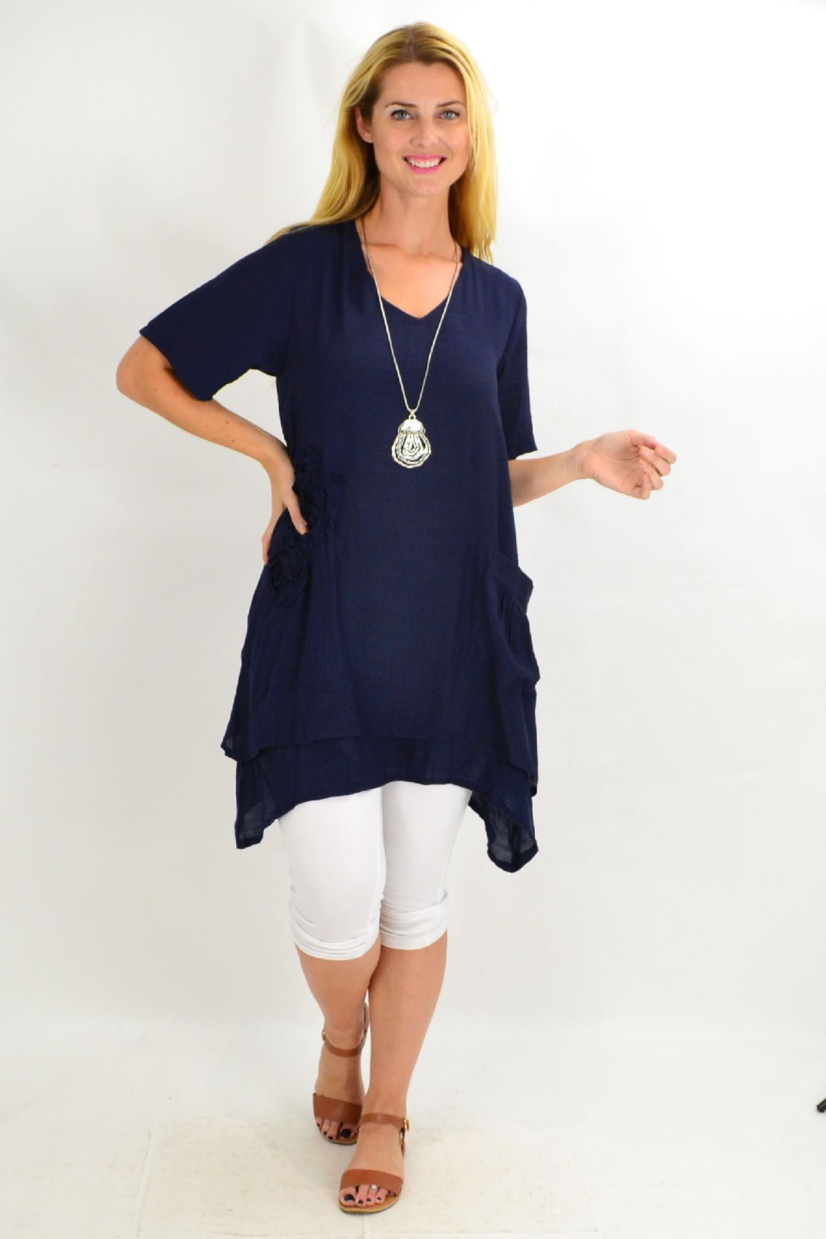 Navy Applique Short Sleeve Tunic Top is available in size 12 to 22 - Please have a look at our sizing guide to help you selected the size that compliments you