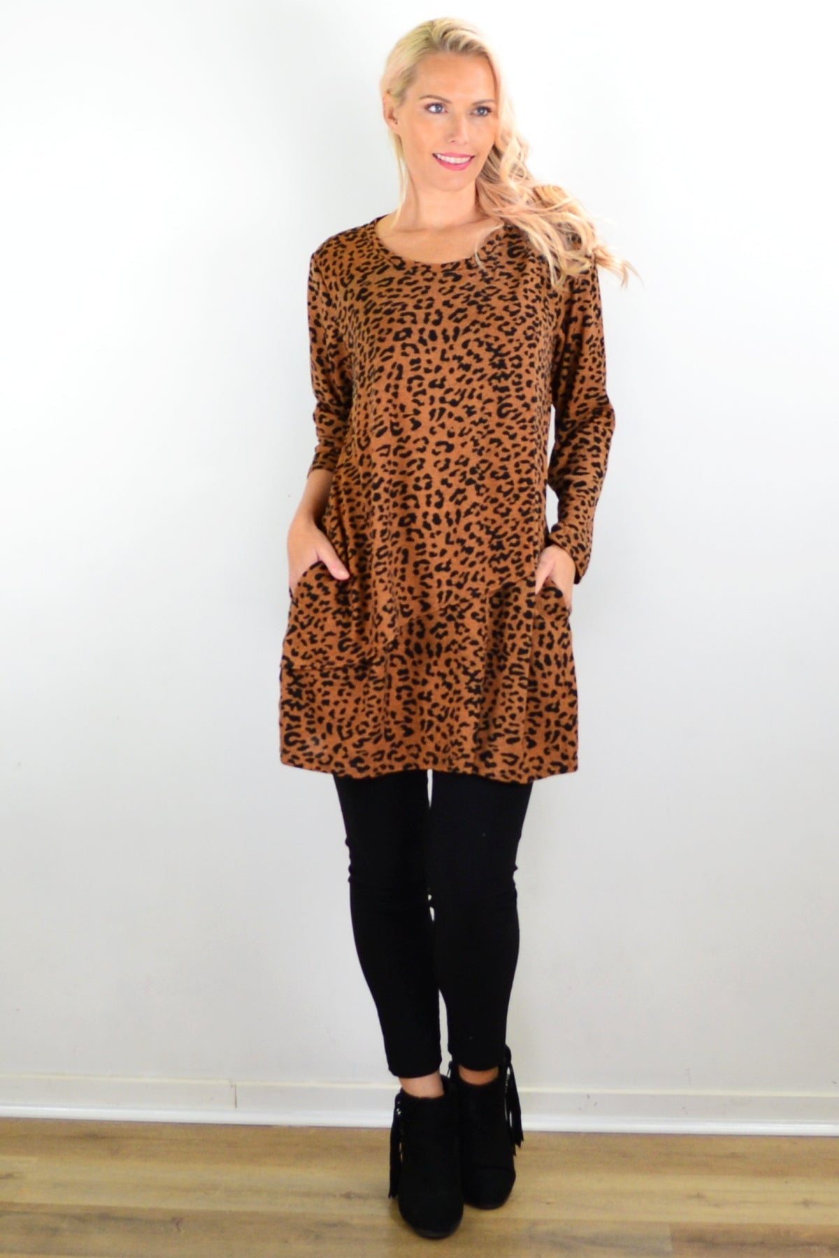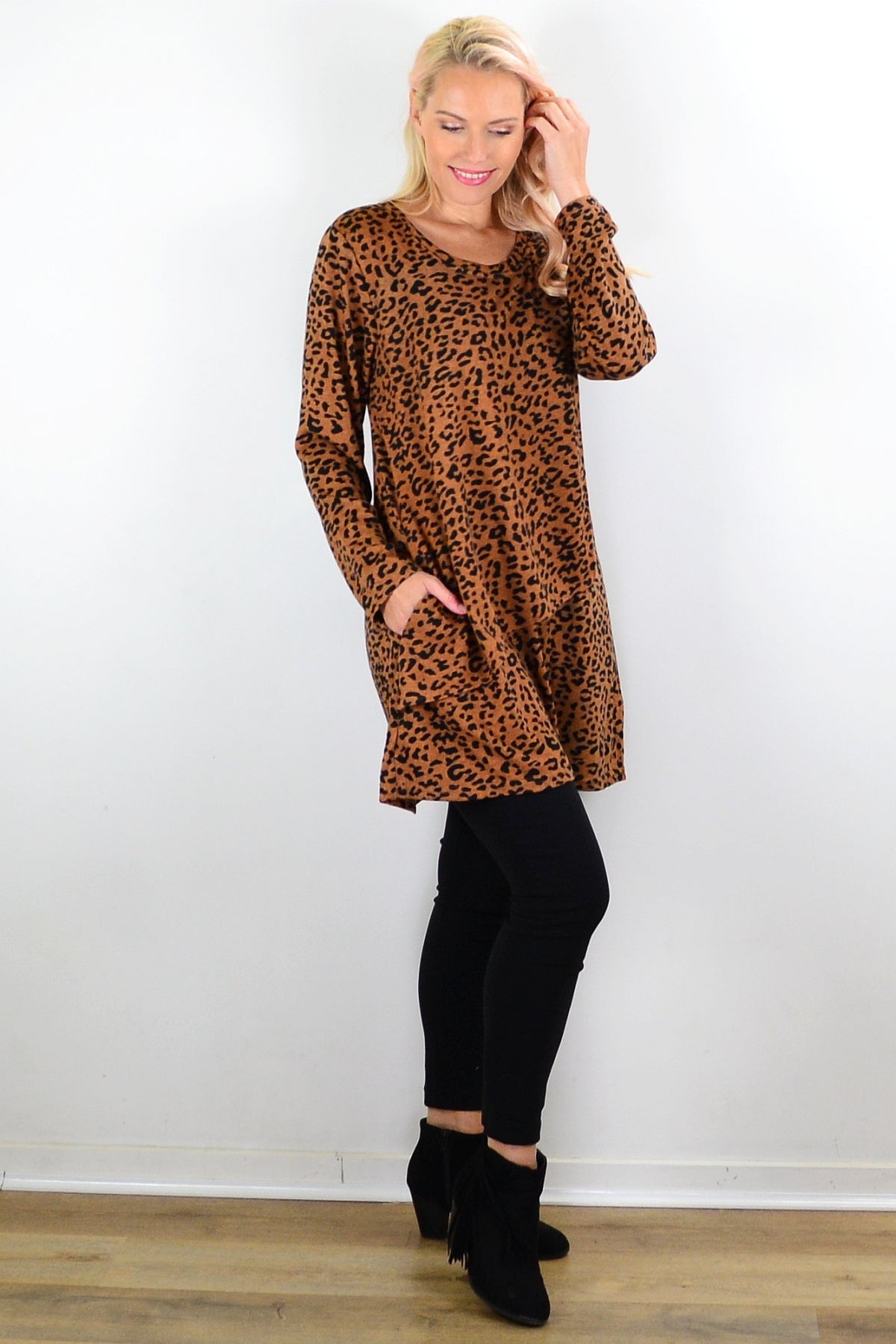 Brown Animal Print Tunic Top