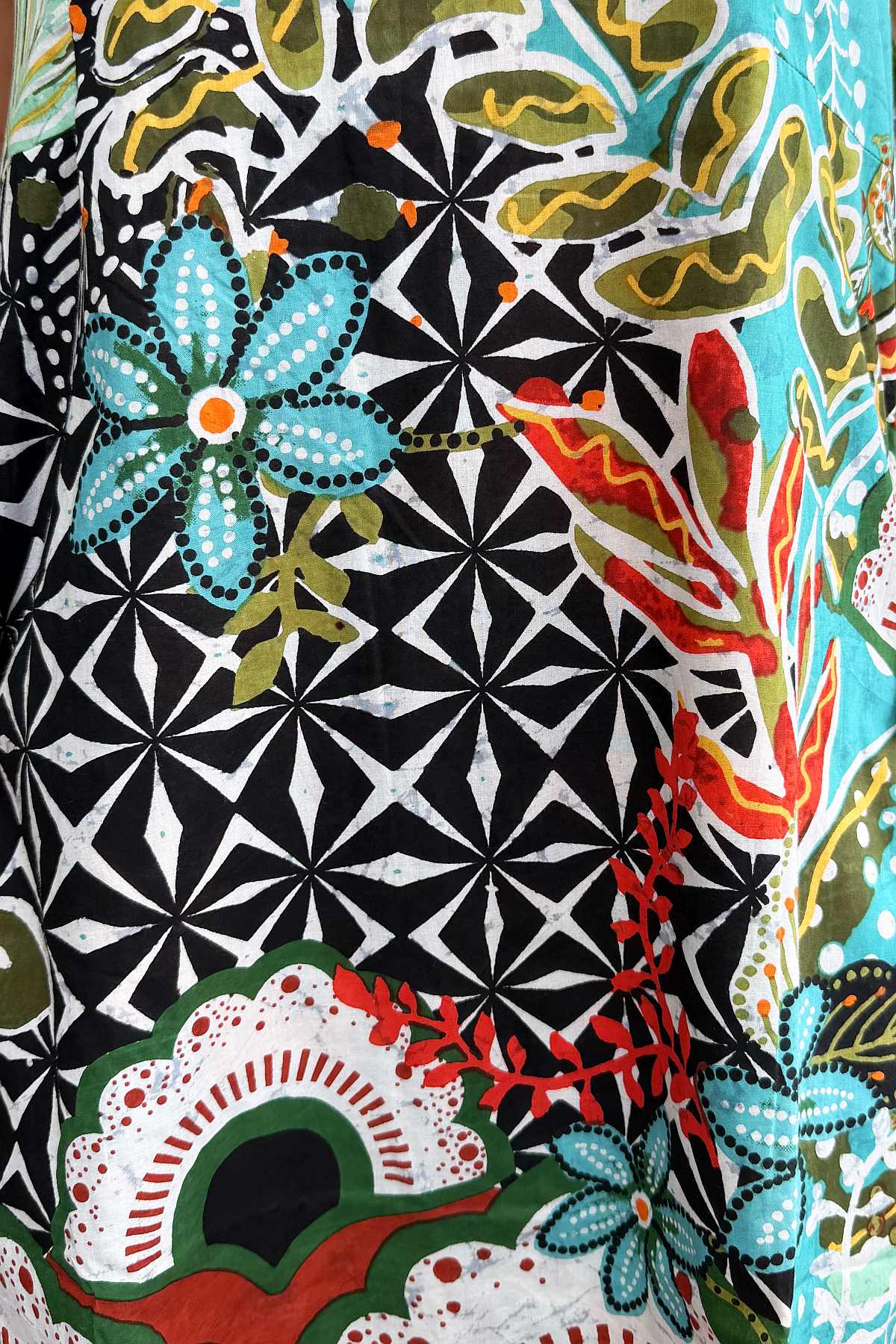 Regular price $129.00 Sale price $99.00The Guaratiba Sleeveless Reversible Tunic Dress offers versatile style with an artistic edge. Featuring a vibrant abstract print in aqua and black on one side, with contrasting yellow and aqua tones on the reverse, this piece delivers two distinct looks in one garment. The relaxed, flowing silhouette skims the body gracefully, landing at the knee for effortless elegance. A round neckline and sleeveless cut provide breathable comfort, while practical pockets add everyday functionality. Crafted from premium 100% organic cotton that's ethically sourced, this tunic dress combines conscious design with refined sophistication.