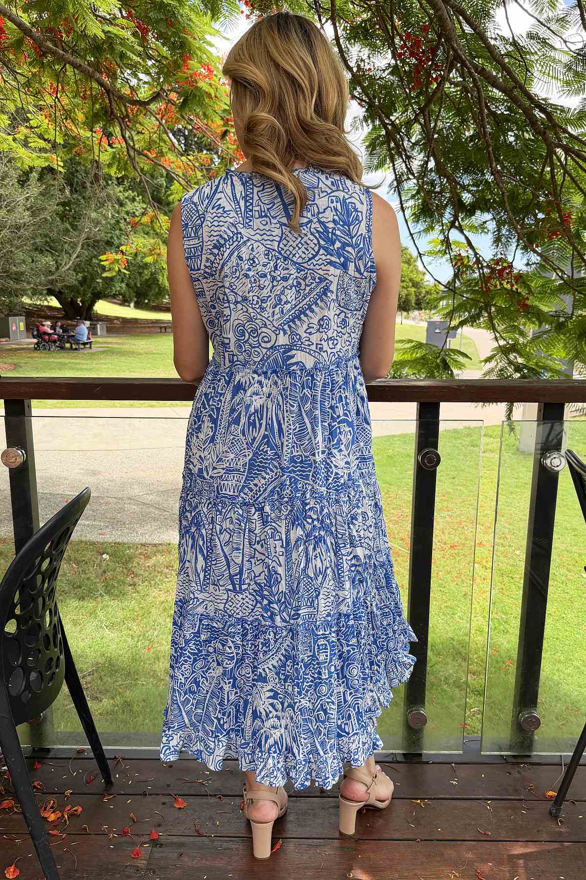 Aksharay Blue Boho Sleeveless Tunic Dress