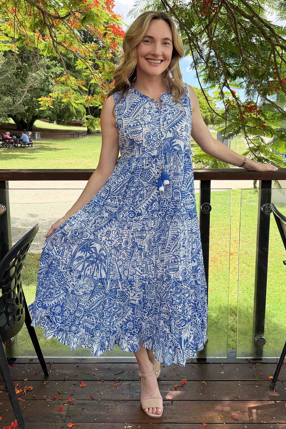 Orientique Aksharay Blue Boho Sleeveless Tunic Dress is available in size 10 to 20 - Please have a look at our sizing guide to help you selected the size that compliments you
