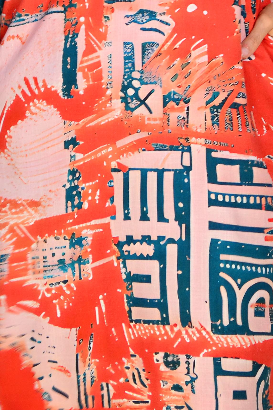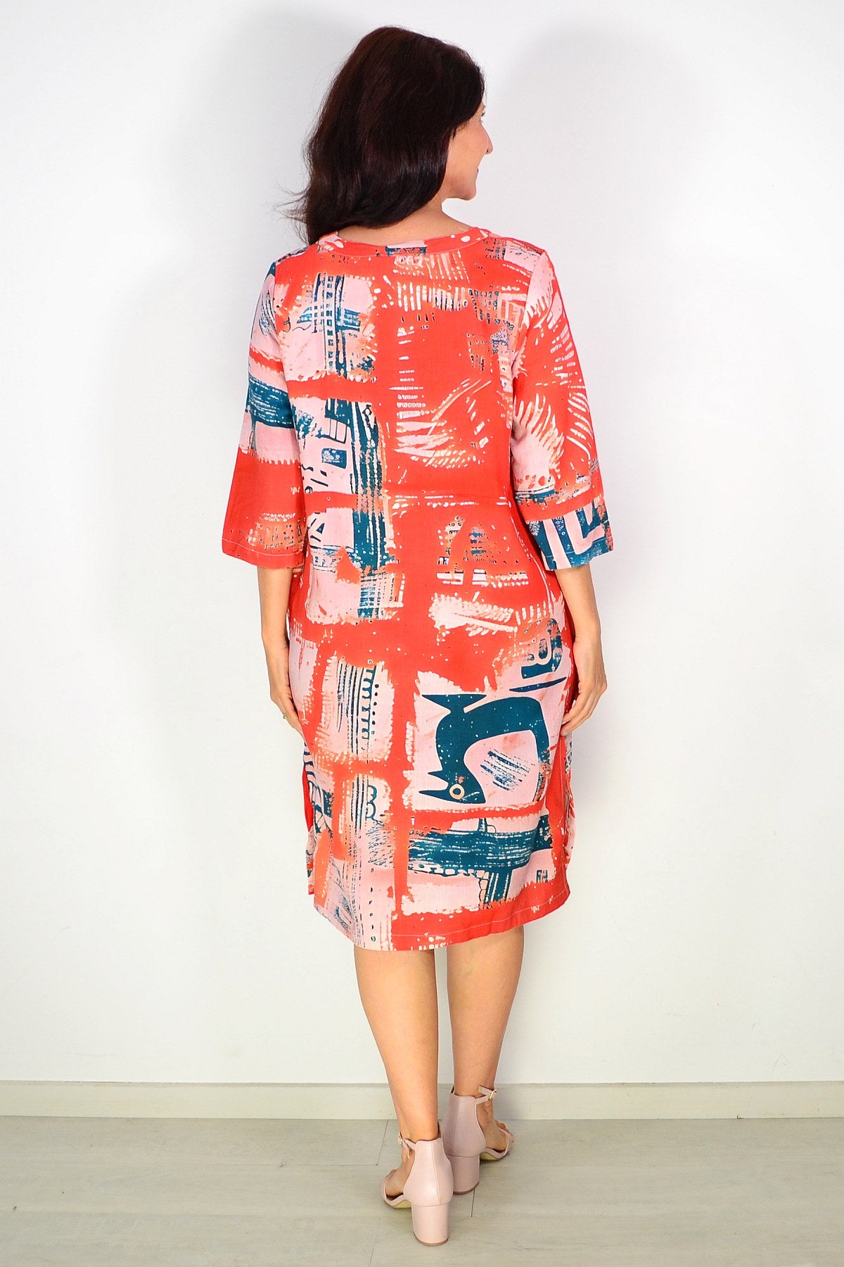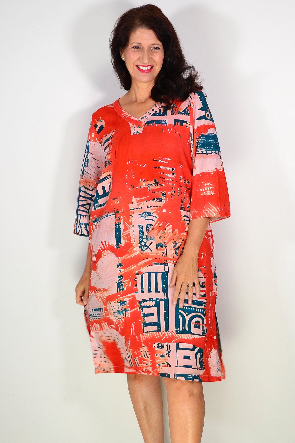 - Orange Salmon Linen Blend Tunic Dress. Main standout colours are orange, salmon, green