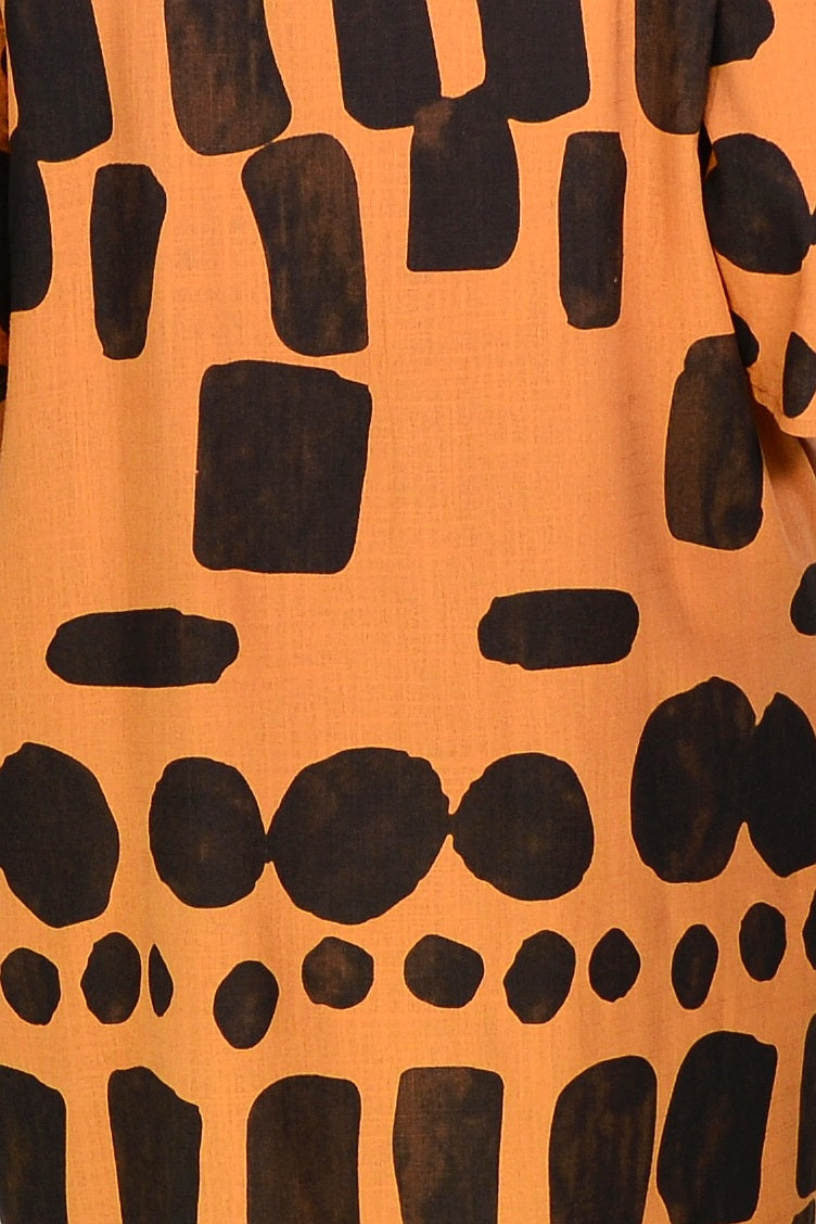 - Orange Black Print Tunic Dress: Orange base with black abstract print