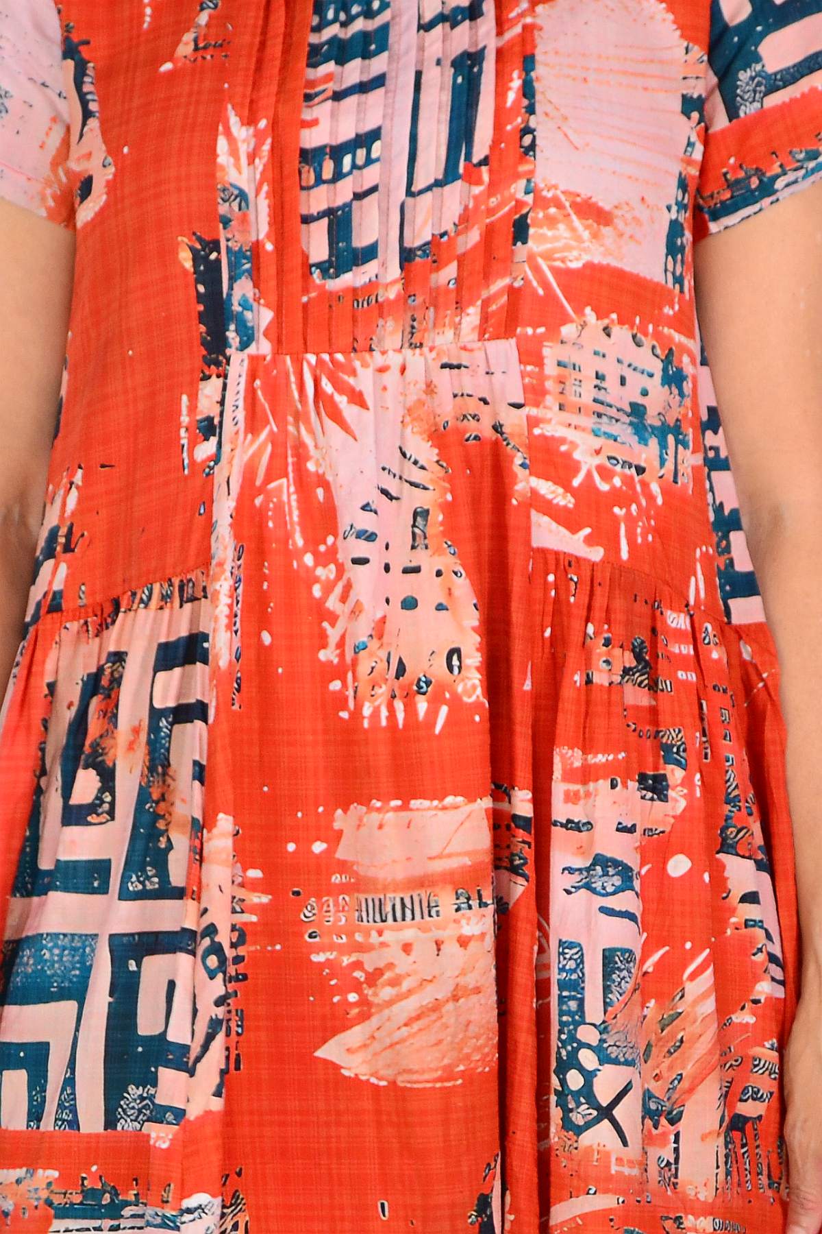 - Orange Abstract Pleated Casual Tunic Dress - orange, salmon and blue are the standout colours