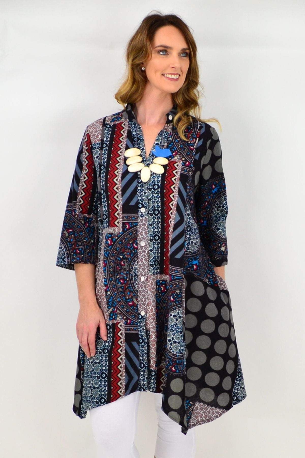 The Aztec Amaya Tunic Top is available in size 14 to 20 - Please have a look at our sizing guide to help you selected the size that compliments you