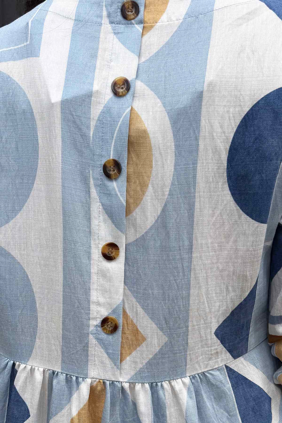 Blue Geometric Print Cotton-Blend Tunic Dress