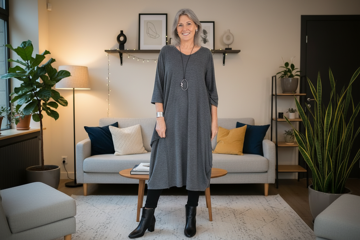 - Charcoal Relaxed Oversized Tunic Dress