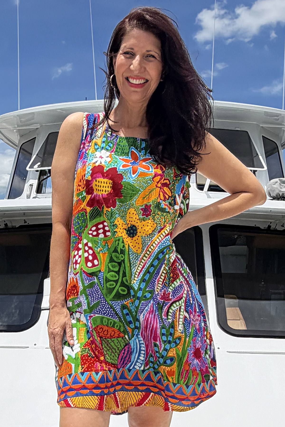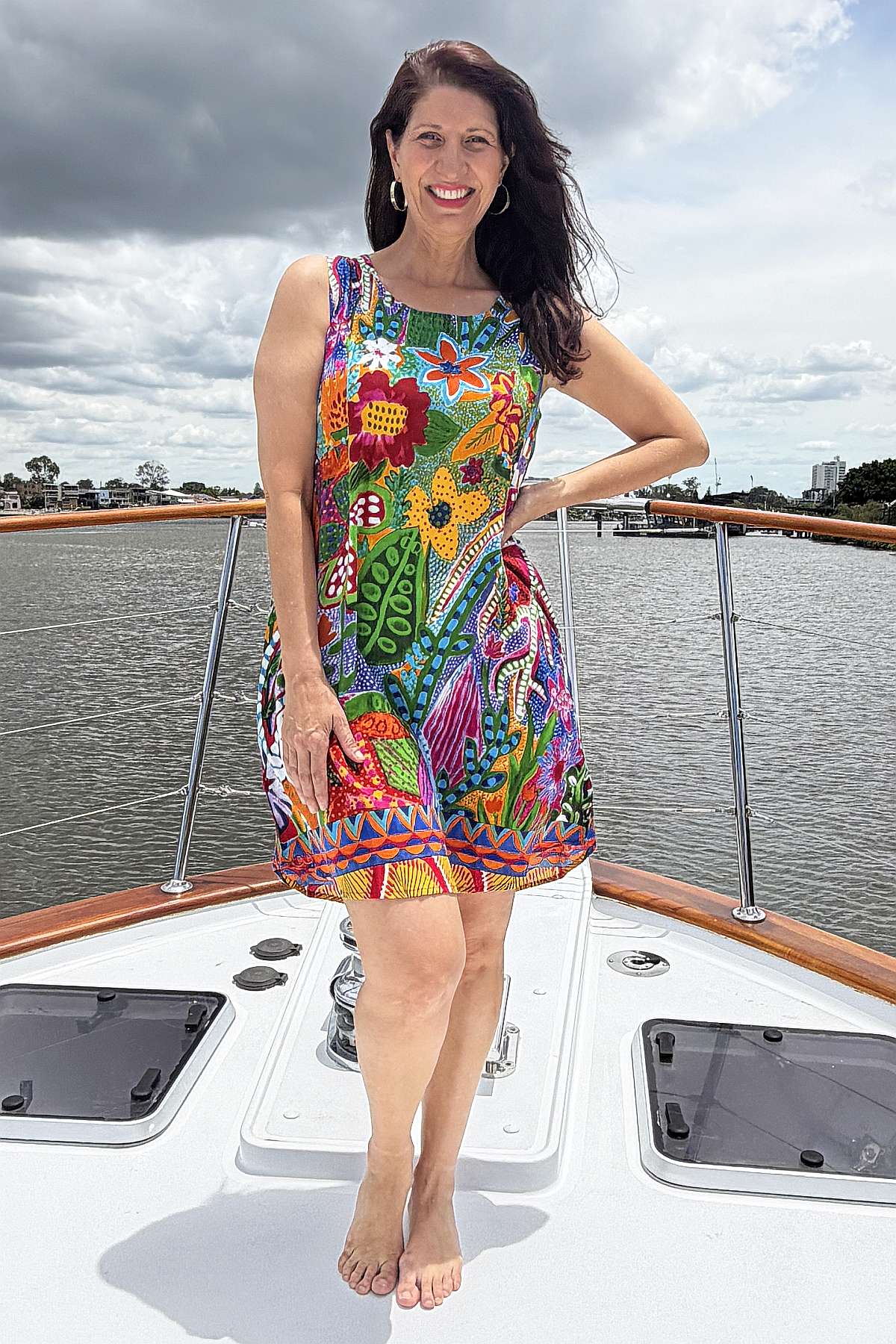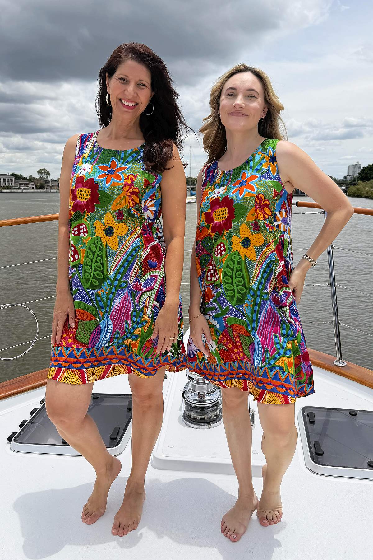Regular price $119.00 Sale price $99.00The Ipanema Sleeveless Shift Tunic Dress brings effortless elegance with its vibrant abstract floral print, where verdant greens and golden yellows create a striking visual impact. Crafted from premium ethically-sourced rayon, this piece features a classic crew neckline and relaxed, flowing silhouette that skims the body gracefully. The sleeveless design offers versatility for layering, while the knee-length cut provides refined proportion. Perfect for warm weather styling, this tunic combines contemporary ease with timeless sophistication.