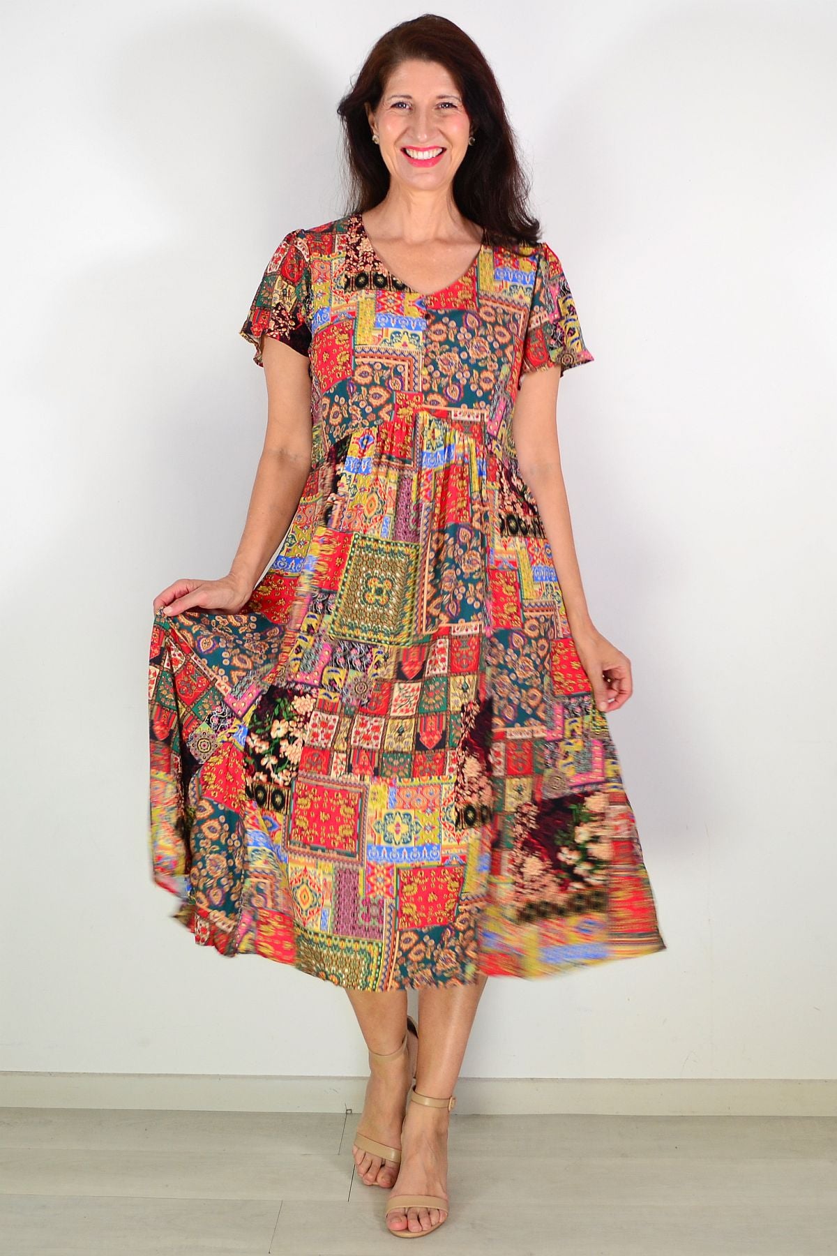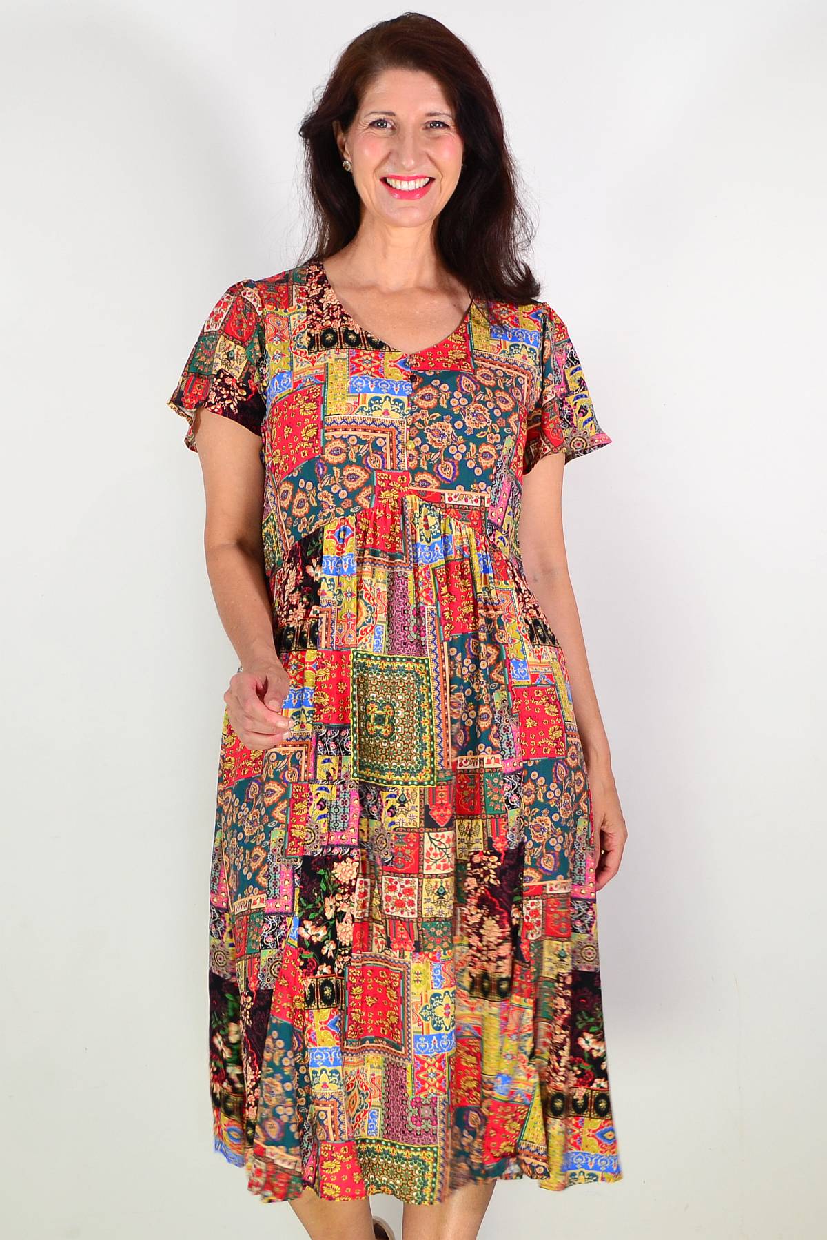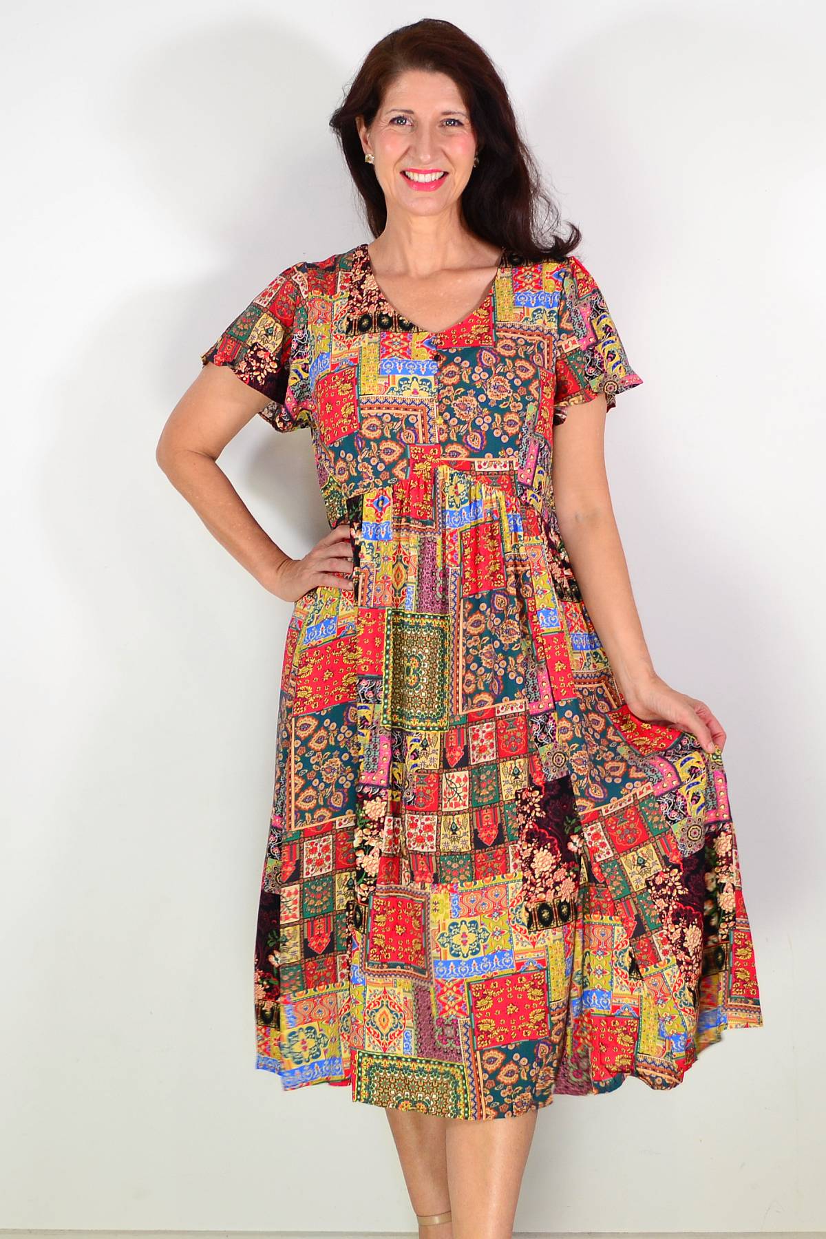 - Colorful fun printed dress - Explosion of colour with an abstract geometric pattern as main feature. Main standout colours are red, blue and green