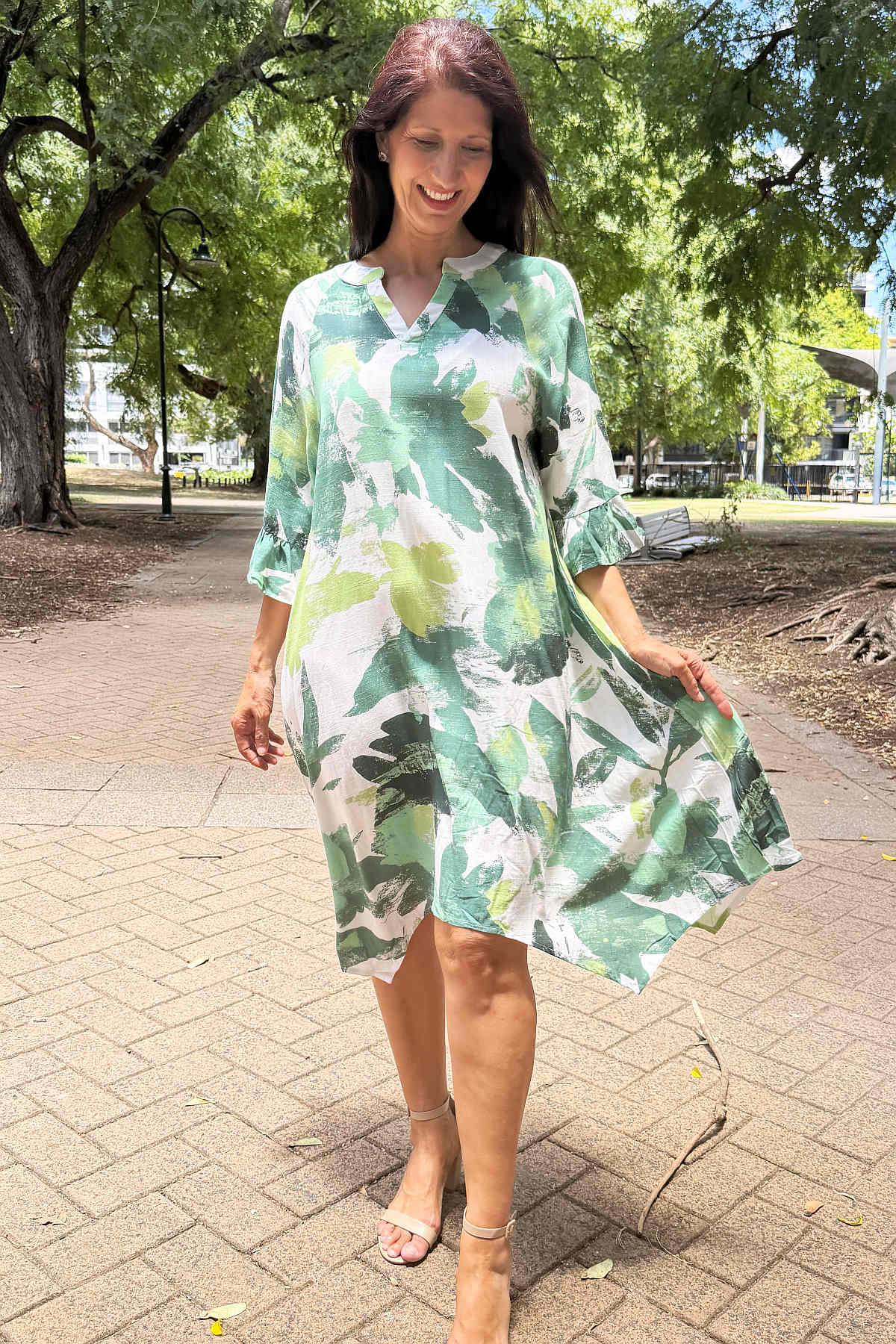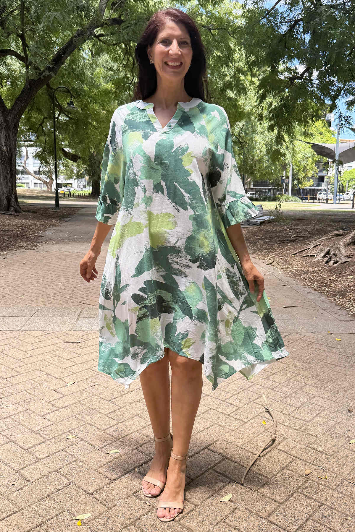 White Green Paint Splash Tunic Dress is available in size 14 to 20 as per our sizing guide - Please have a look at our sizing guide to help you selected the size that compliments you